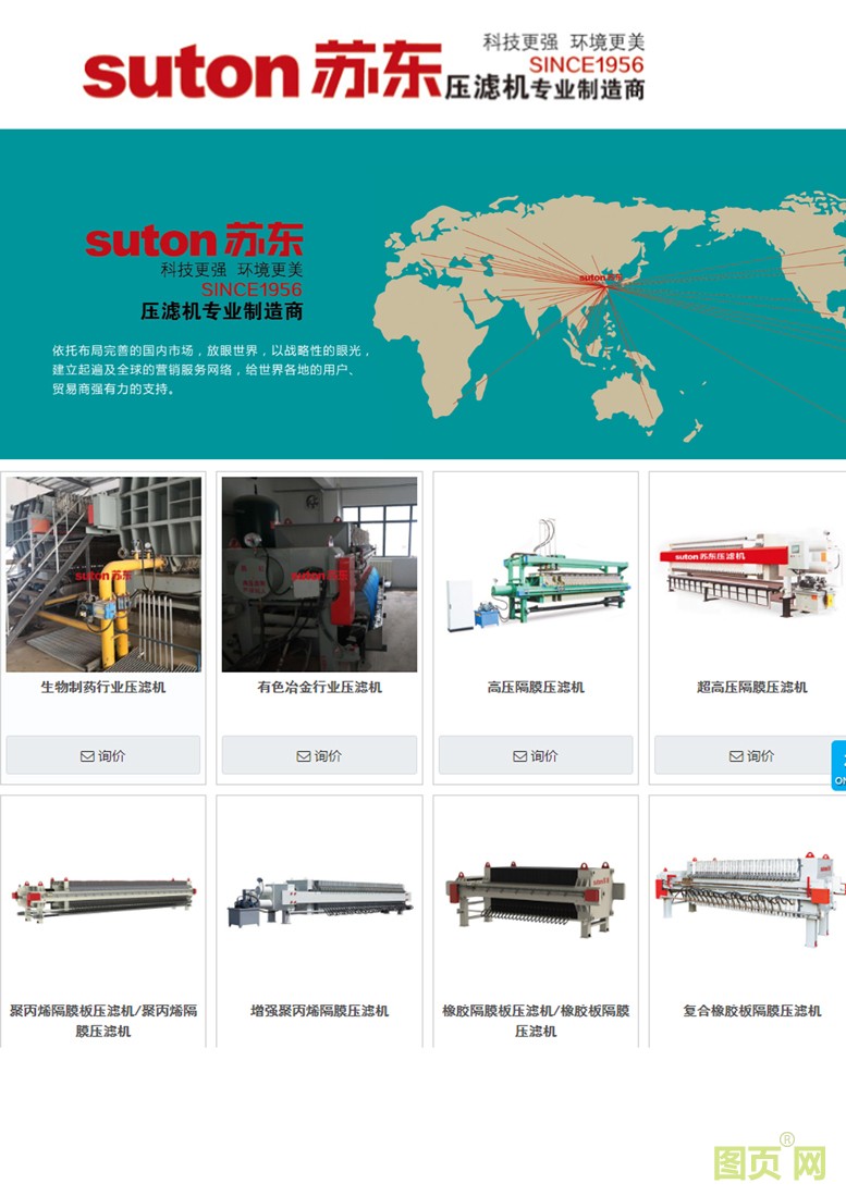 江蘇蘇東化工機械有限公司創建于1956年6月,從事壓濾機的研究、設計和制造已有二十多年歷史,是復合橡膠板、增強聚丙烯板和不銹鋼板壓濾機制造的專業廠家。公司占地面積10萬平方米,現有員工500多名,其中各類工程技術人員105名。公司設備精良、檢測手段齊備,具有雄厚的技術力量和產品開發能力,擁有多項國家專利和自己的知識產權,已發展成為全國壓濾機制造行業的龍頭企業之一。