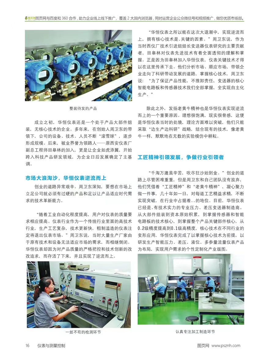 “我是科班出身,懂技術,又在不同的企業工作過,為什么不能創辦自己的企業呢?”想明白自己的前進方向后,周衛東毅然決然走向了民營儀表生產領域,于2009年創立了華恒儀表。