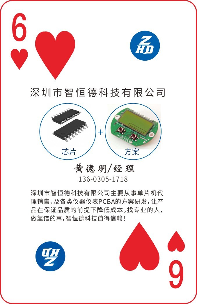 《2020圖頁儀表行業撲克牌》推出就得到深圳市智恒德科技有限公司市場部經理黃德明的認同和支持,黃經理的智恒德科技積極認領了紅桃6做為此次的公司的專屬牌!