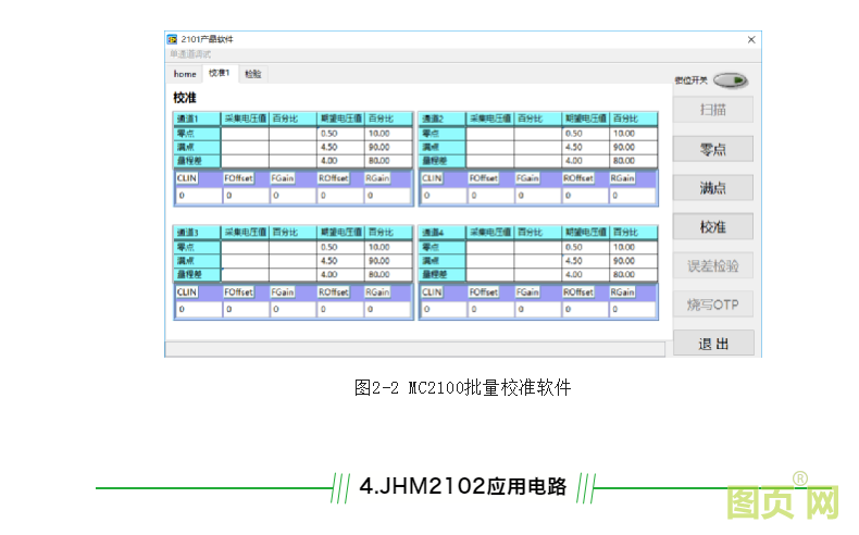 JHM2102有成熟的批量生產套件,特別是MCB2100校準板可以直接安裝到自動校準測試系統(tǒng)上,直接與工業(yè)計算機通信,校準速度可以達到5S/支。MCB2100還可搭配2100批量校準軟件實現(xiàn)手動校準,對于年產量不高的客戶手動校準可以減少設備投資,校準速度要慢一些,可以達到45S/支。