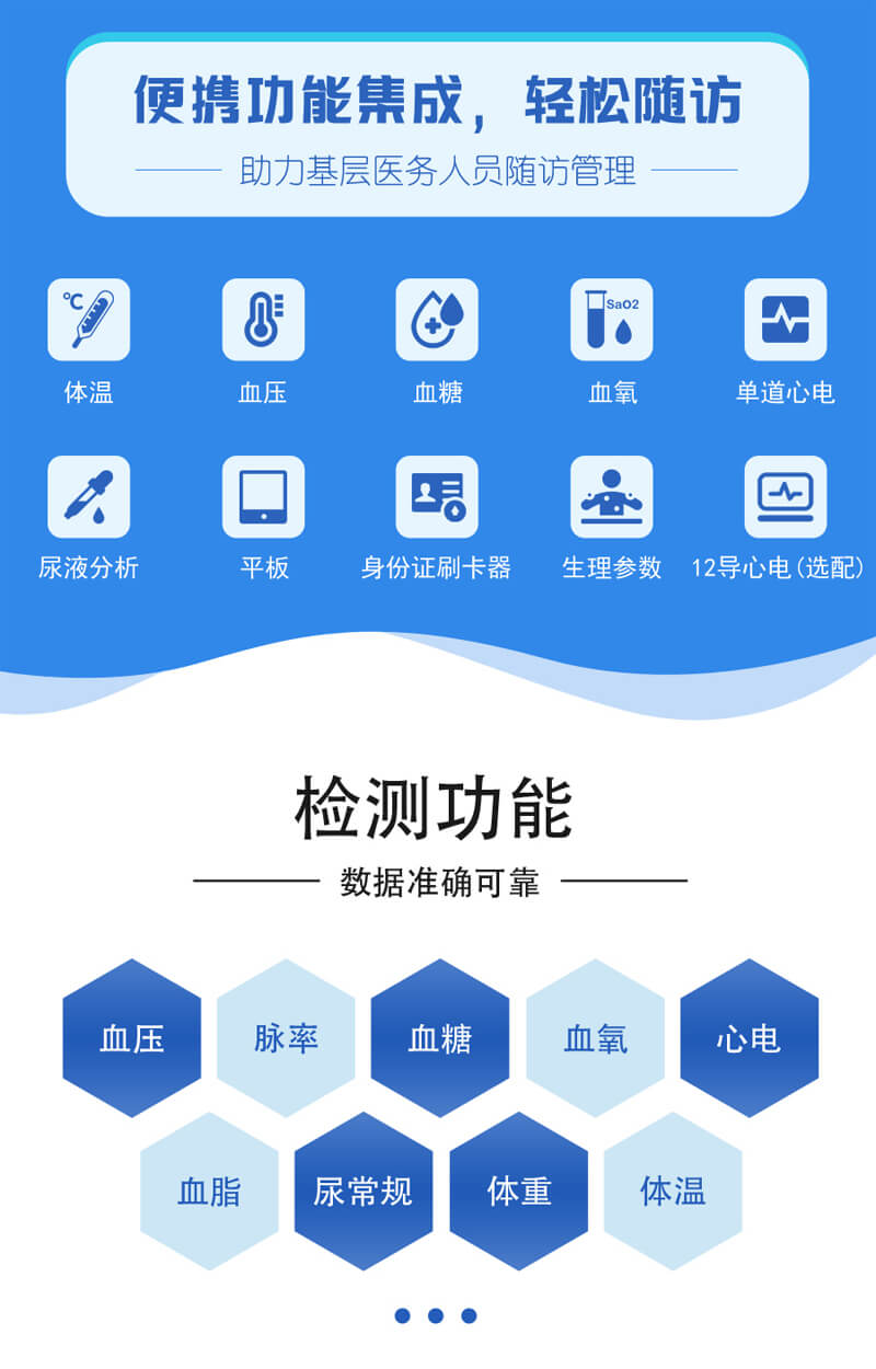 2、高效的數(shù)據(jù)采集與處理:上正華瑞移動(dòng)隨訪包配備了先進(jìn)的醫(yī)療設(shè)備和傳感器,能夠準(zhǔn)確、快速地采集老年人的生理數(shù)據(jù),如血壓、血糖等。同時(shí),通過(guò)內(nèi)置的數(shù)據(jù)處理系統(tǒng),可以實(shí)時(shí)分析這些數(shù)據(jù),為醫(yī)生提供有力的診斷依據(jù)。
